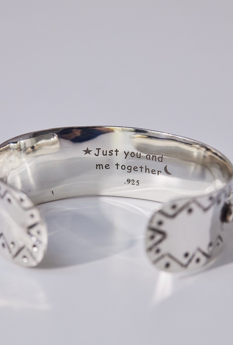 SMOKY BLUEでは、よく見ていただくとこの7本の釘の箇所に6つの星と1つの月のデザインしており、着けてくれる方の願いが叶いますように。と想いを込めています。